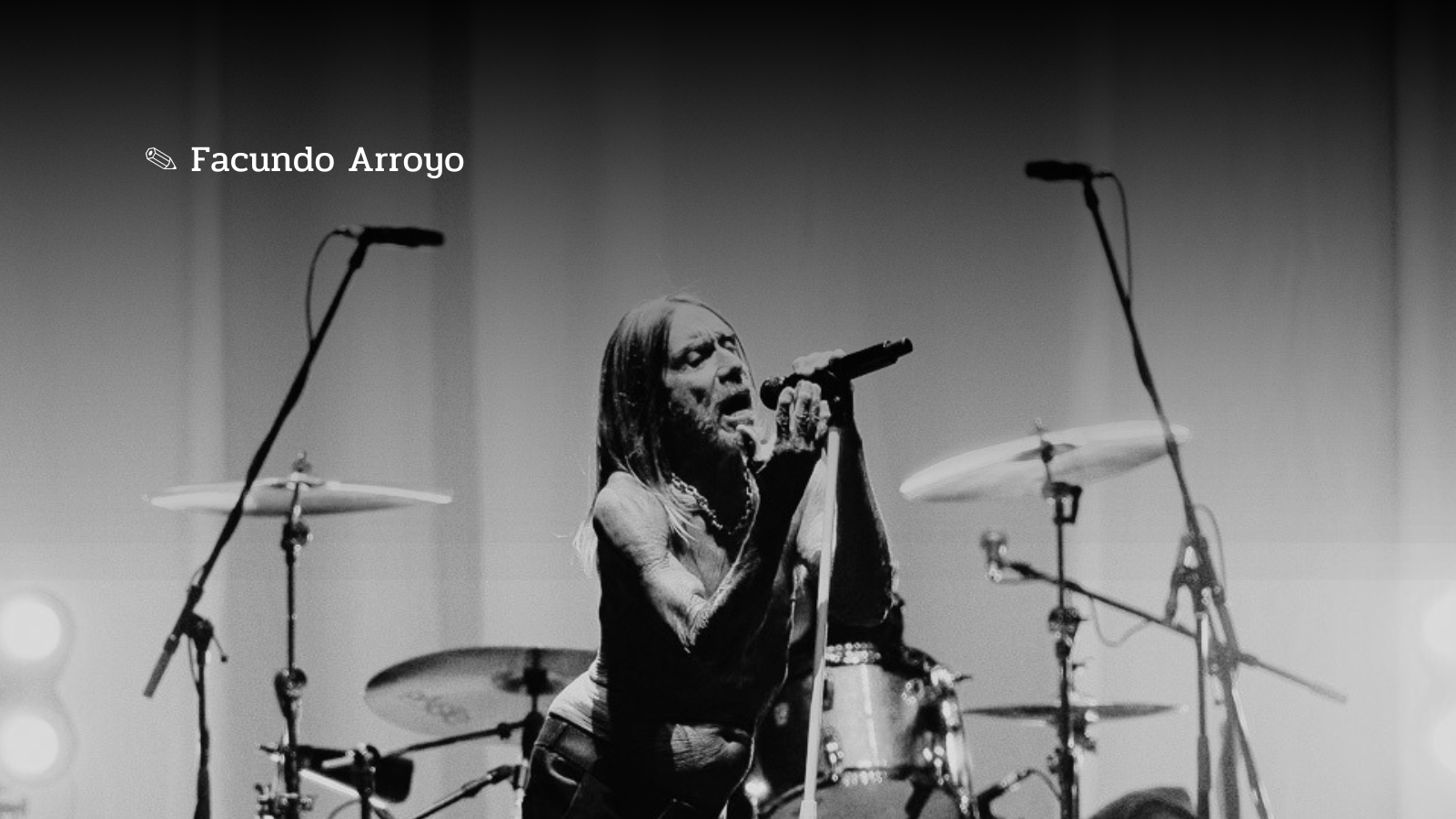 También se habla mucho del cuerpo de Iggy porque, en esencia, es uno de los grandes performer de la historia de la cultura rock. Y como dijo el sociólogo Esteban Rodríguez Alzueta: “El rock, por definición, es performático”. No hubo muchos más como él. La destreza de Jagger y la electricidad de Ian Curtis, sí, pero nadie le vendió la cadera al diablo. Iggy firmó y ahora, como hace algunos años, el loco sigue acechando con su performance por más que casi ya no pueda caminar. Al diablo también le gustaban los Stooges, por eso le conservó la melena rubia e intacta. Siempre me quedé pensando que ese pacto, y toda la historia de vender características humanas, tuvo que ver con su estadía en Berlín junto al Bowie krautrockero. Sí, The idiot, entra al podio, aunque algunos lo dejen afuera. Los ojos corte mulholland drive al frente y las canciones inoxidables, ya habrán visto por setlist.fm que tocó nueve canciones de su gran banda.