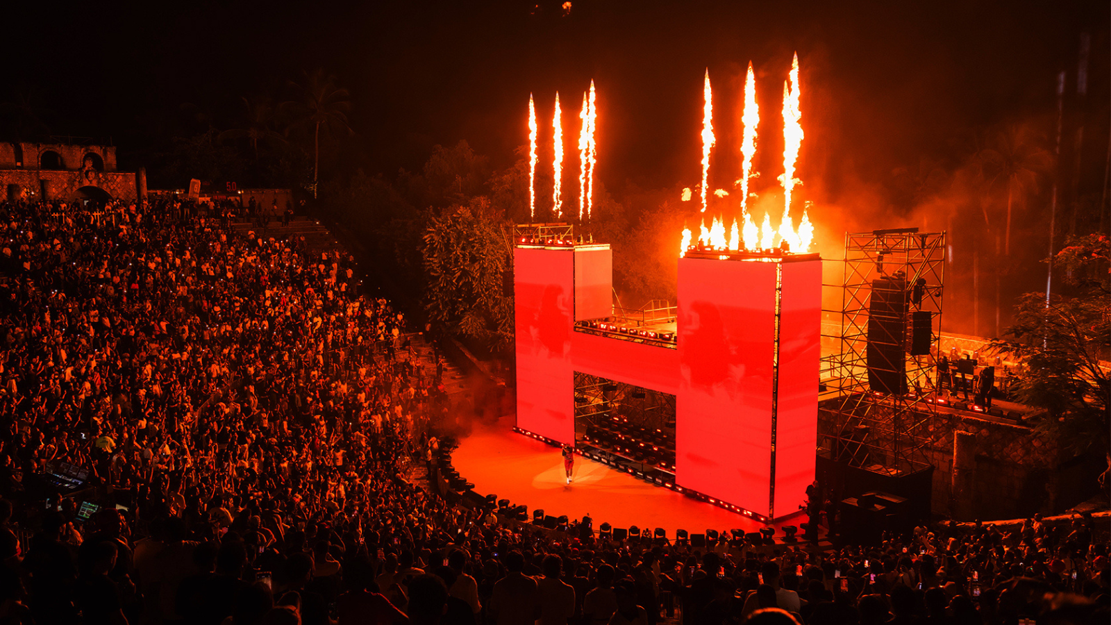 Con la responsabilidad y el desafío que implica producir un montaje escénico para tremendo espacio, como es Altos del Chavón, y para tan talentoso artista como lo es Eladio Carrión, The Movement se puso al frente del trabajo con el compromiso de crear un show histórico, y así fue, dejando una huella imborrable.